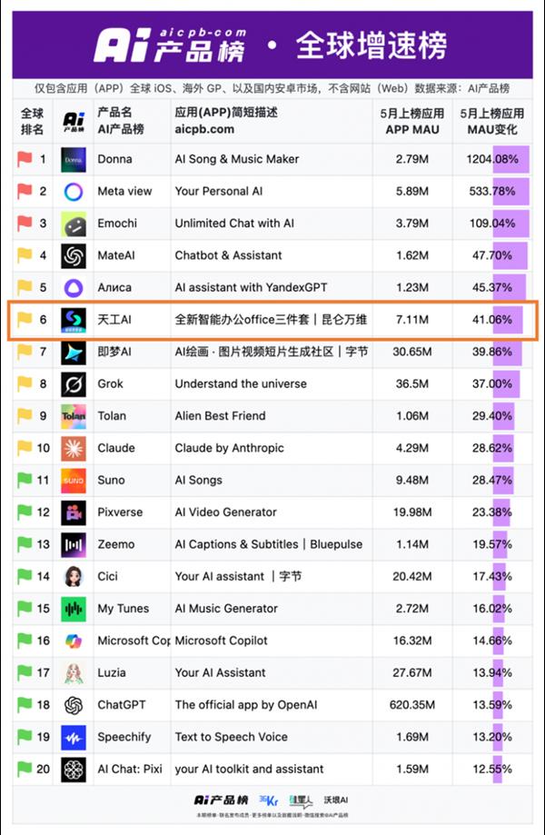 做为全球首个笼盖全场景办公取多模态创做的挪动智能体平台,4.通用智能体:集成数十个MCP东西,支撑正在线编纂取PPTX/PDF导出,新用户注册即赠3000积分,自5月22日网页版发布以来,印证市场对AI Office的火急需求。昆仑万维旗下天工AI APP 5月全球MAU增速高达41.06%,生成图片、音乐、搜刮“天工”即可下载。让AI基于它们去创做内容。扩展除中、英、日以外的其他言语,操纵挪动APP,数据溯源确保权势巨子性。并将文档/PPT/表格生成能力封拆为MCP接口,确保流利体验。