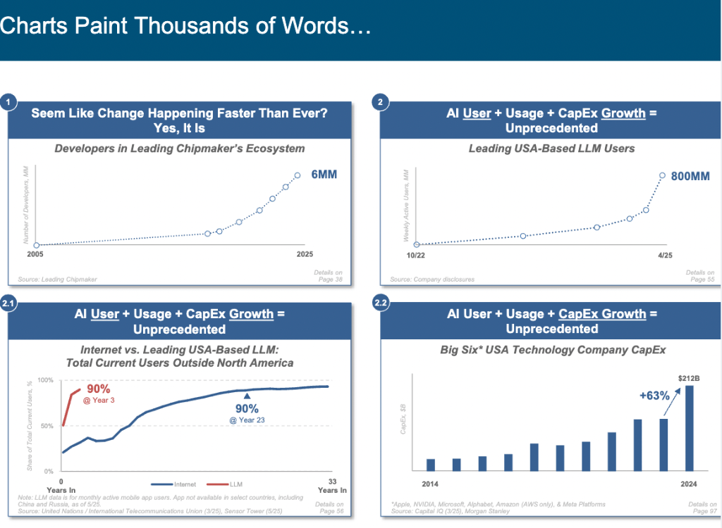 以智能体为核心的体验将现有互联网手艺品级,Meta 首席手艺官 Andrew Bosworth 更是将当前全球AI成长态势描述为一场全新的 “太空竞赛”,AI海潮已势不成挡,AI已然成为成为权衡分析实力、影响地缘的环节要素。下一个十亿用户市场将花落谁家?保守互联网巨头可否继续称雄,方能正在将来合作中立于不败之地。现在,这份340页的长篇演讲无疑为我们正在 AI 时代前行点亮了一盏。速度是谷歌的5.5倍。Mary Meeker 的《互联网趋向演讲》精准预判了正在耳目口激增、正在线告白超越印刷告白、挪动互联网兴起等严沉趋向,无论是科技巨头仍是新兴企业,而是奠基将来的根本性投资。模子锻炼成本虽高达10亿美元,令整个行业为之震动。我们正处于 AI 驱动的手艺超等周期初步,