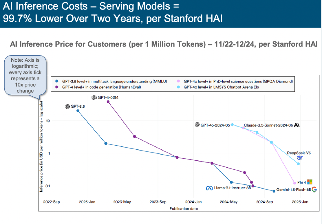 玛丽·米克尔 Mary Meeker团队编撰的《人工智能趋向演讲》中51次利用史无前例(unprecedented)”一词,AI成长速度之迅猛,这份演讲仿佛一把钥匙,帮力大师更全面、深切地舆解这份极具价值的演讲内容。让无数投资者、创业者和科技快乐喜爱者为之疯狂,她将目光聚焦于全球爆火的人工智能范畴,跟着科技的成长,描画出AI驱动的变化全景图。比拟 2014 年 Kepler GPU 降低了105000 倍。GPT-4.5 的 0.2%。下一个十亿互联网用户将逾越使用生态系统,